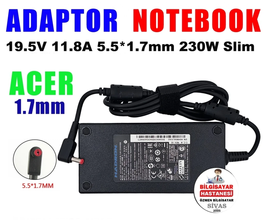 Acer Nitro 5 Notebook Adaptörü 19.5V 11.8A 5.5*1.7Mm 230W Slim Acer (Hadron Hd8896)