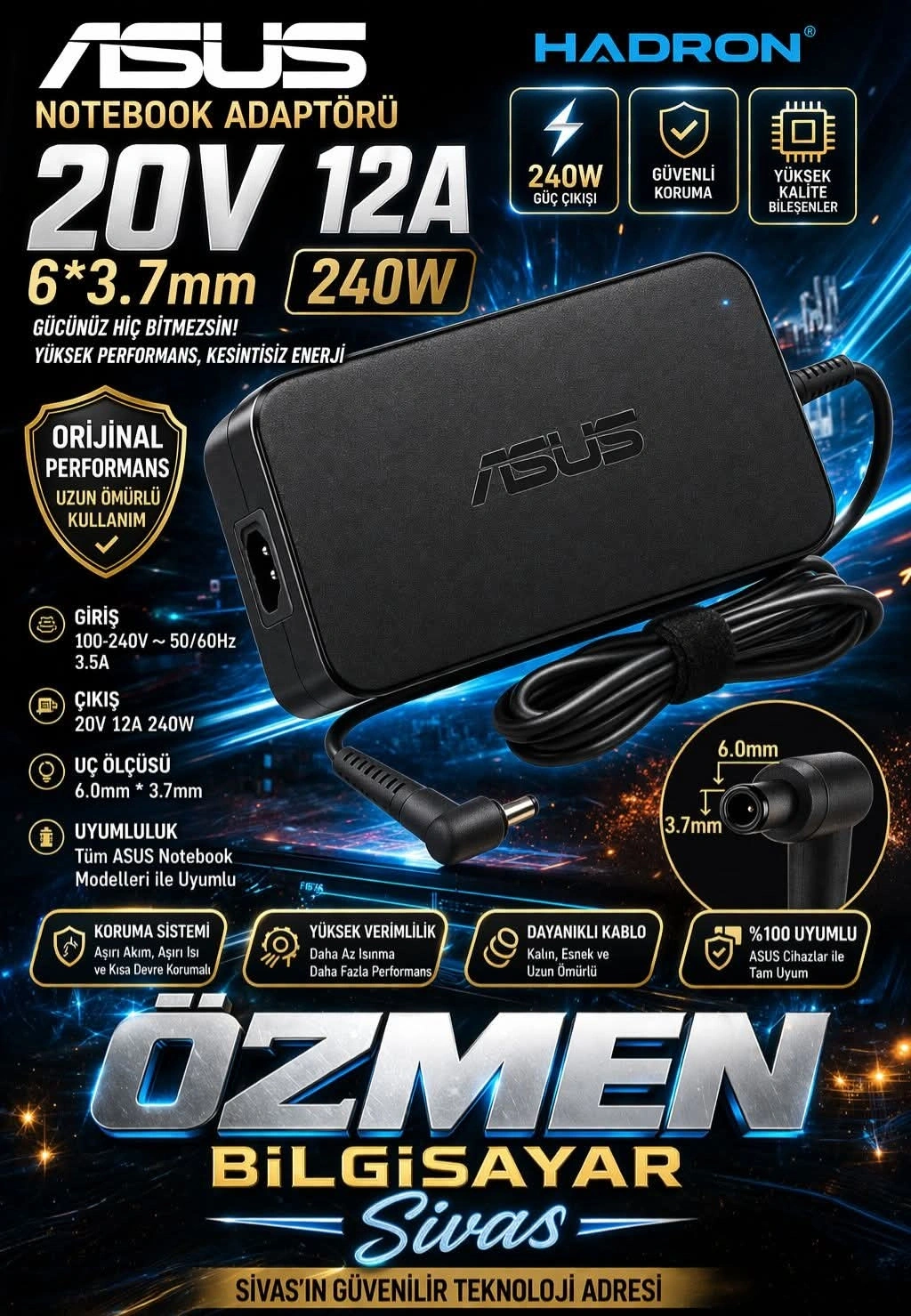 Asus Notebook Adaptörü 20V 12A 6*3.7 240W (Hadron Hd8874)
