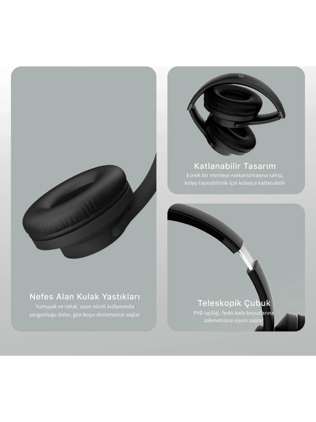 Uzun süreli kullanımda bile konforunuzdan ödün vermeyen Bix BH2, yumuşak kulak yastıklarıyla donatılmıştır. Bu yastıklar, kulağınızı nazikçe sararak dış gürültüleri minimuma indirir ve rahat bir dinleme deneyimi sunar. Aynı zamanda, ergonomik tasarımı sayesinde kulaklık kafanıza tam oturur ve kaymaz.