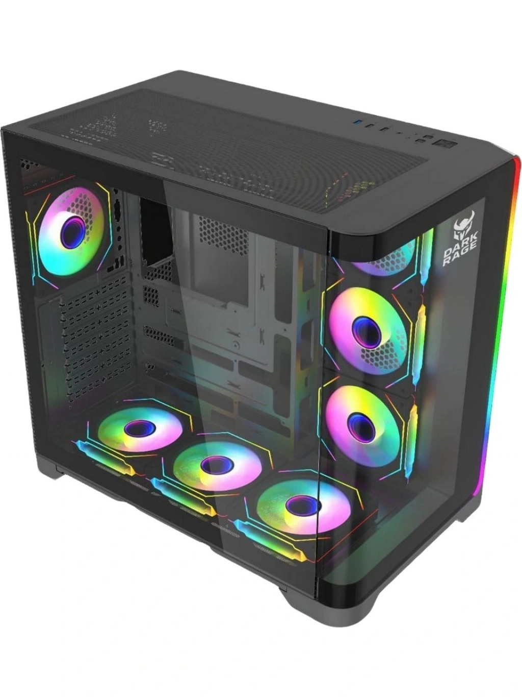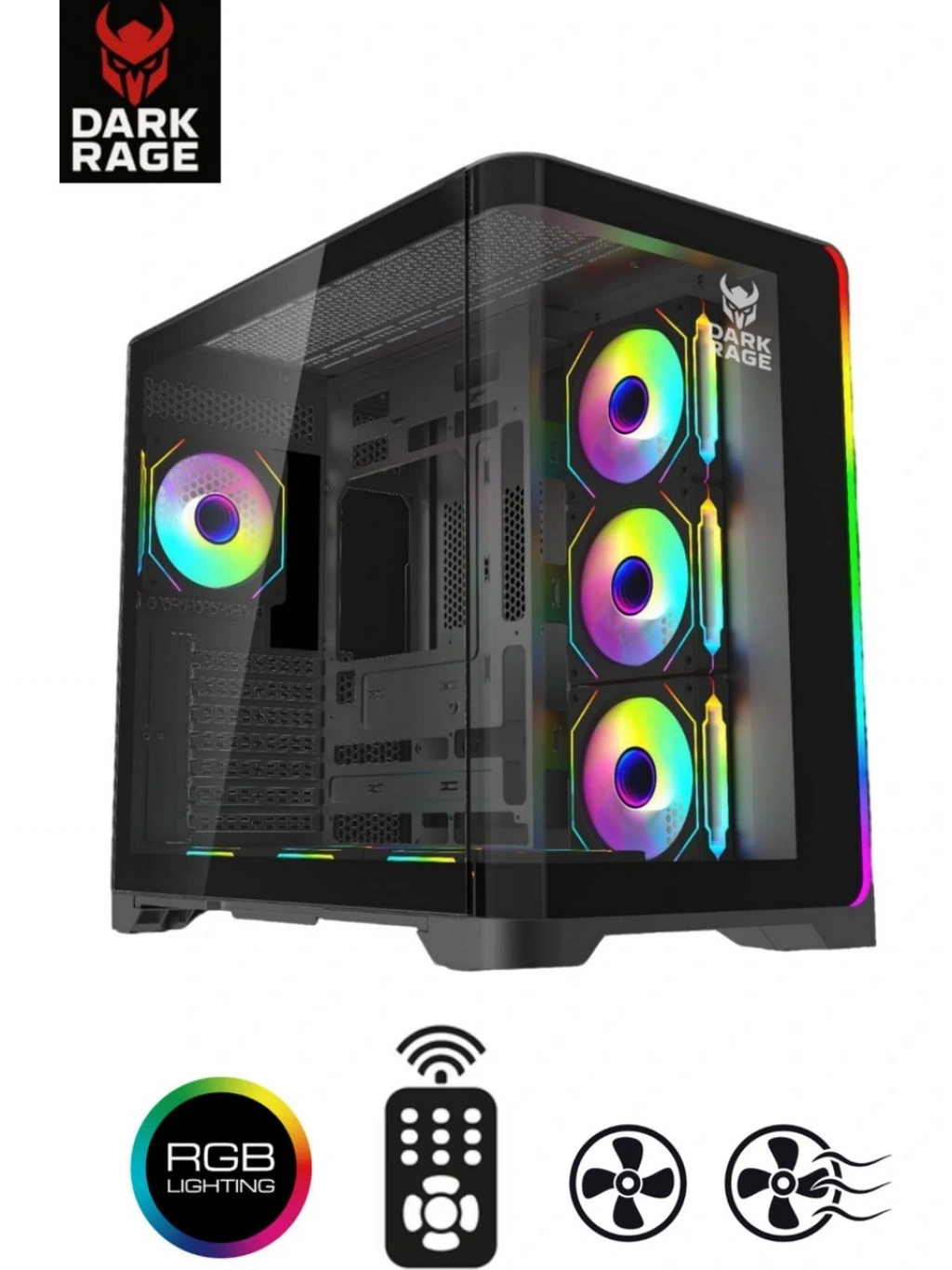 DARK RAGE Rgb 7 Fanlı 7X120MM Kumanda+Tuş Rgb Kontrollü Gaming Akvaryum Kasa Siyah