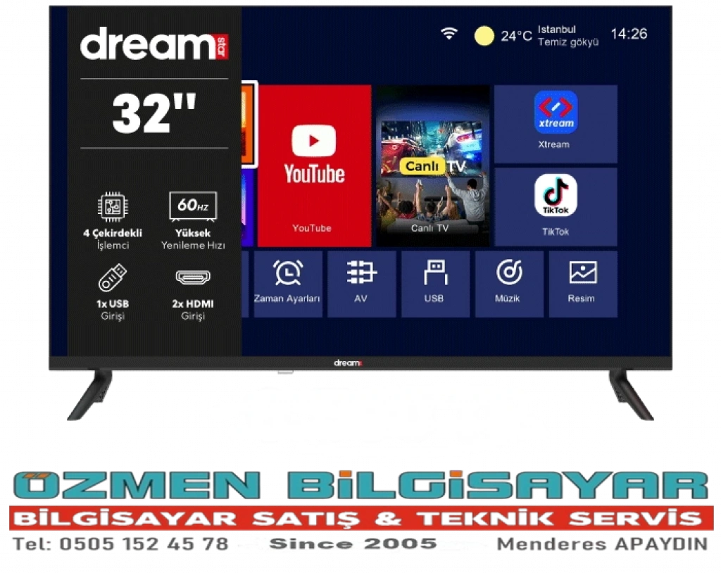 DREAMSTAR 32” (82cm Ekran) Uydu Alıcılı Led TV