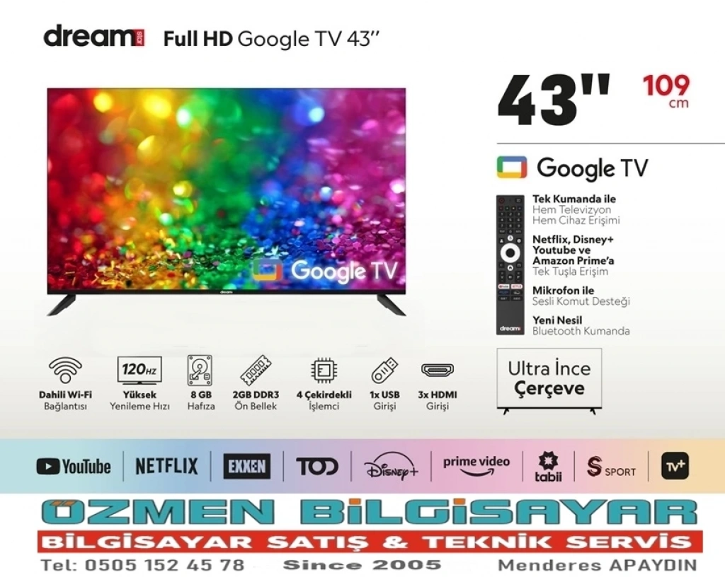 DREAMSTAR – 43” (109 cm Ekran) Full HD Frameless Google TV Televizyon