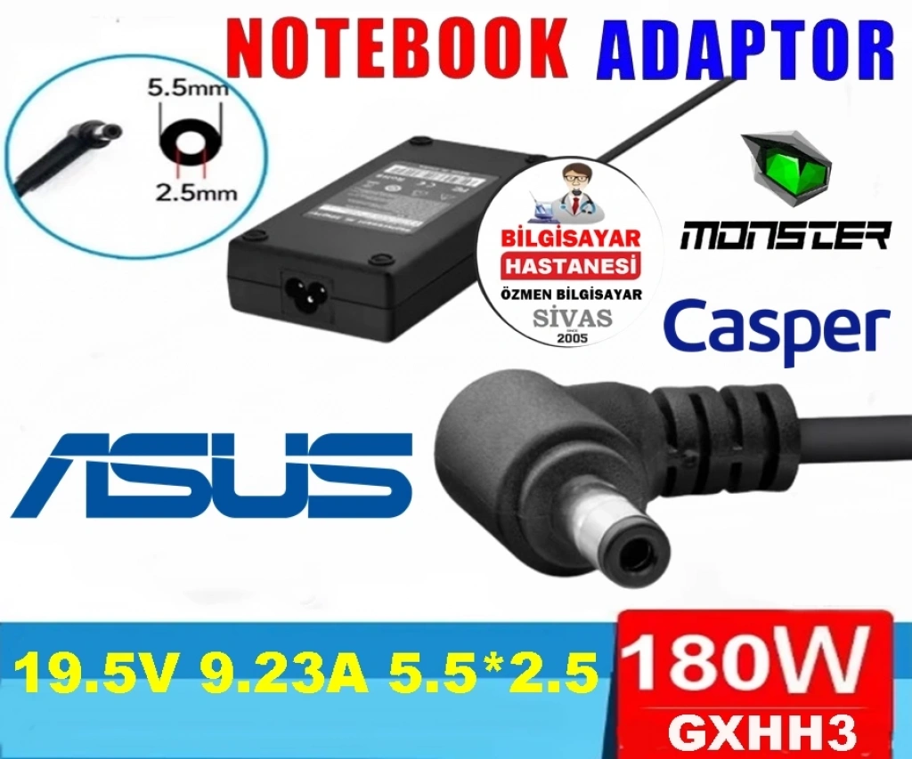 GXHH3 NOTEBOOK ADAPTÖR 19.5V 9.23A 180W 5.5*2.5 MONSTER ASUS CASPER