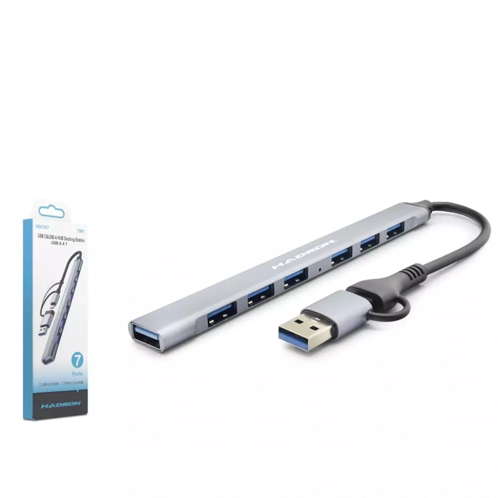 Hadron HDX7857, USB-C girişli cihazlar için çok portlu bağlantı çözümü sunan etkili bir hub’dır. 1 adet USB 3.0 portu ile yüksek hızlı veri aktarımı, 6 adet USB 2.0 portu ile çevre birimlerini tek bağlantıda yönetme imkânı sağlar. Gri renkli gövdesi ile hem şık hem fonksiyonel bir çözüm sunar.