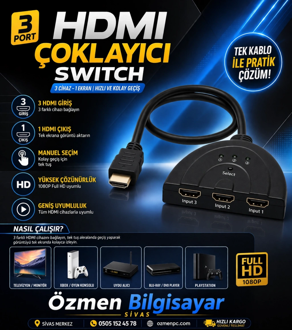 • ÜZERİNDEKİ DÜĞMESİ SAYESİNDE KULLANMAK İSTEDİĞİNİZ HDMİ BAĞLANTI PORTUNU SEÇEBİLİRSİNİZ