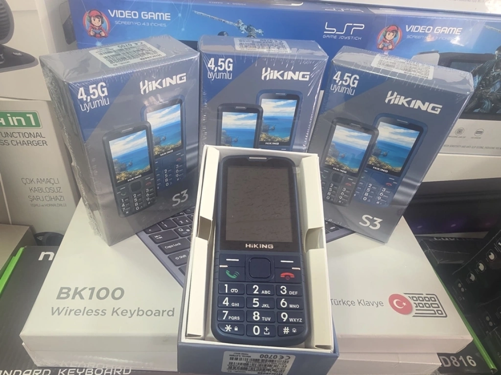 Hiking S3 Türkiye'nin ilk ve tek Android -Tuşlu Telefonu Android Kamerasız 1Gb Ram 8Gb Depolama Facebook Instgram Whatsapp 4.5G Desteği Hafıza Kart Desteği Çift Sim Kart Desteği Bluetooth Eller Serbest Özelliği Takvim Hesap Makinası Hızlı Arama Gövde Boyutu: 133 × 58 × 14.7 mm. Ekran Boyutu: 2.8 inç dokunmatik ekran. Ekran Çözünürlüğü: 240 × 320. Kasa Malzemesi: PC + ABS (plastik) İşlemci (Yonga Seti): MTK6739 Bellek: 1 GB RAM Depolama: 8 GB SIM Kart: Çift Micro SIM TF (Micro SD) Kart: 1 adet TF kart (maksimum 128 GB destekler) Ön Kamera: Yok Arka Kamera: Yok Yan Tuş: Ses / El feneri Kulaklık Girişi: 3.5 mm Şarj Girişi: Type-C Hiking S3 Kamerasız Tuşlu Android Telefon
