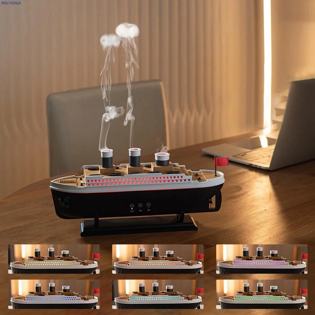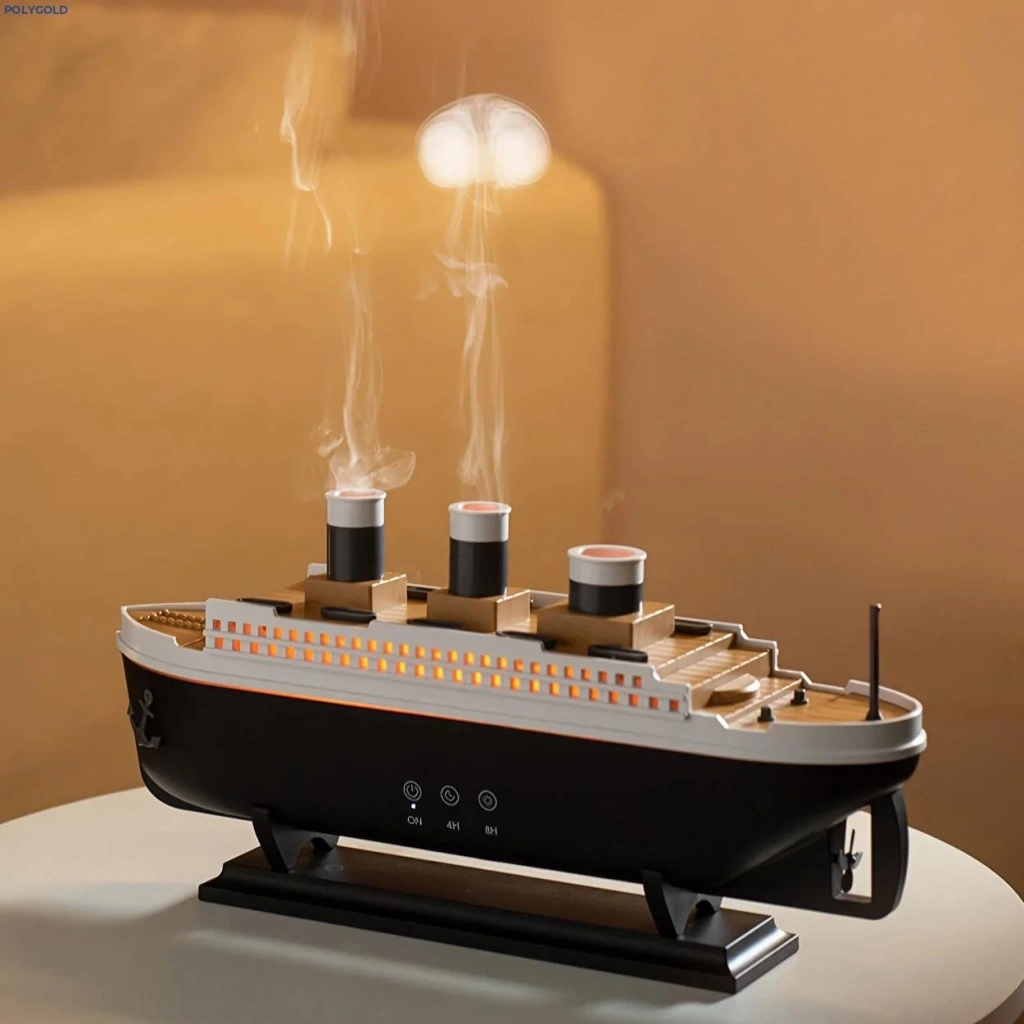 Uzaktan kumandası sayesinde kolayca kontrol edebileceğiniz buharlı difüzör, LED aydınlatmaları ve geminin bacalarından çıkan buhar efekti ile görsel anlamda da etkileyici bir deneyim yaşatır. Ofis, yatak odası, çalışma alanı ya da hediye alternatifi olarak benzersiz bir seçenektir.