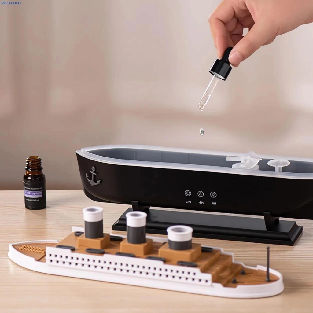 Efsanevi Titanic şimdi yaşam alanınızda huzur ve tazelik yayıyor! Titanic Gemi Aromaterapi Hava Nemlendirici Difüzör, zarif tasarımı, etkileyici buhar çıkışı ve fonksiyonel özellikleriyle hem dekoratif hem de rahatlatıcı bir deneyim sunar. Bu özel tasarım ürün, klasik Titanic gemisinden esinlenmiş detaylarıyla masa üstünde bir sanat eseri gibi dururken, havayı nemlendirir ve aromaterapi yağlarıyla ortam havasını ferahlatır.