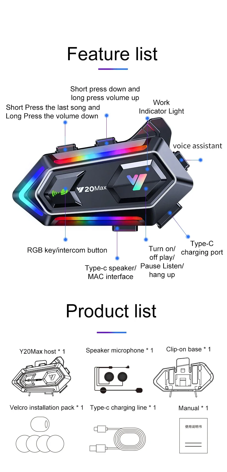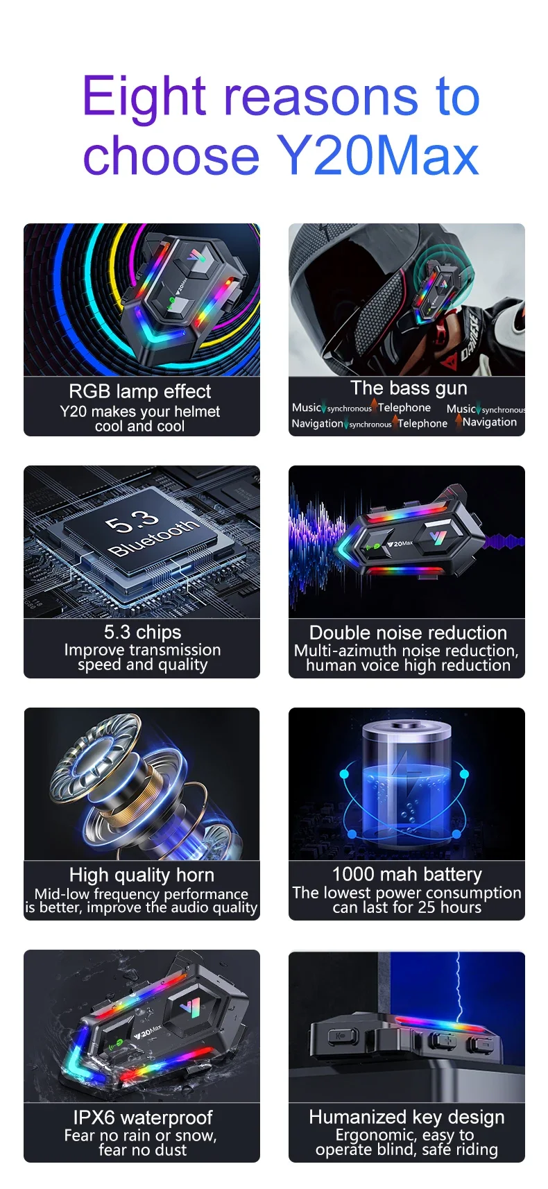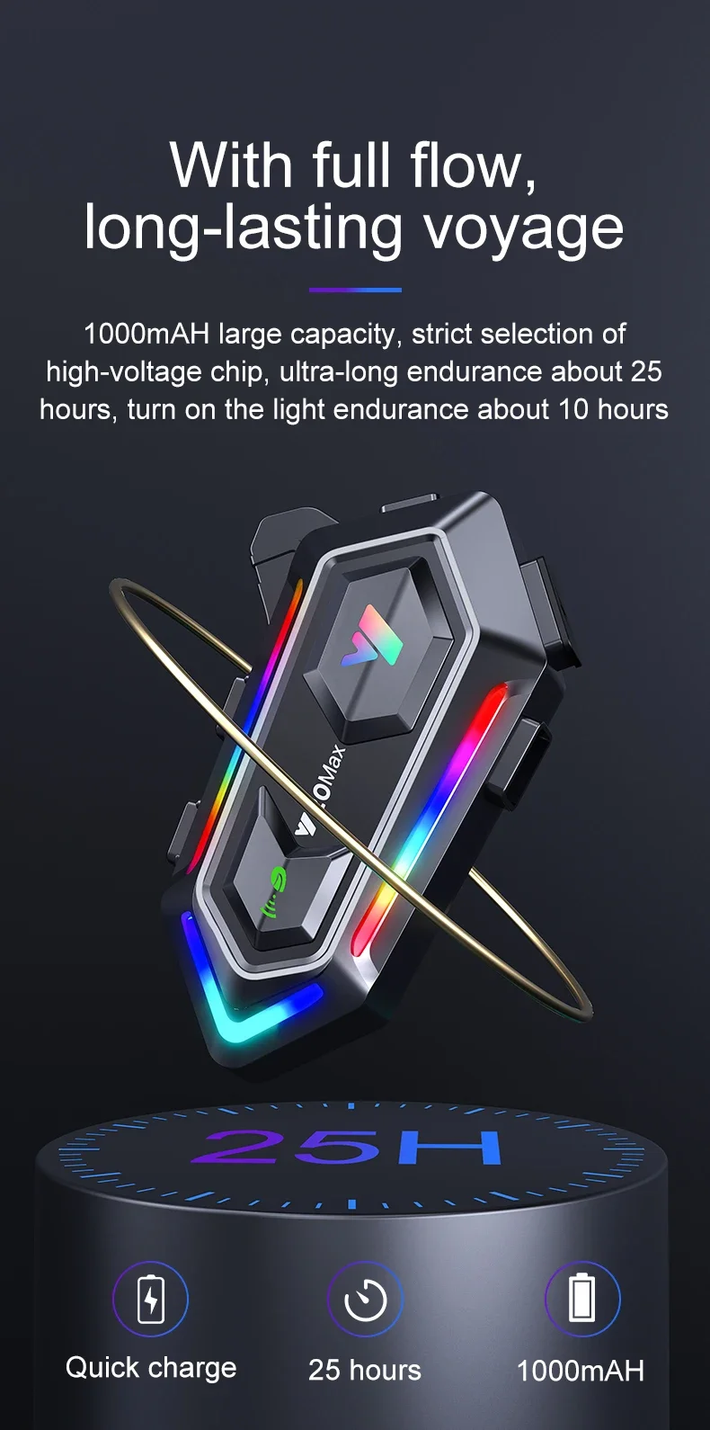 Destek 2 binici veya ön ve arka koltuk interkom, mesafe 300 metre. Birbirleriyle konuşurken müzik dinleyebilirsiniz.