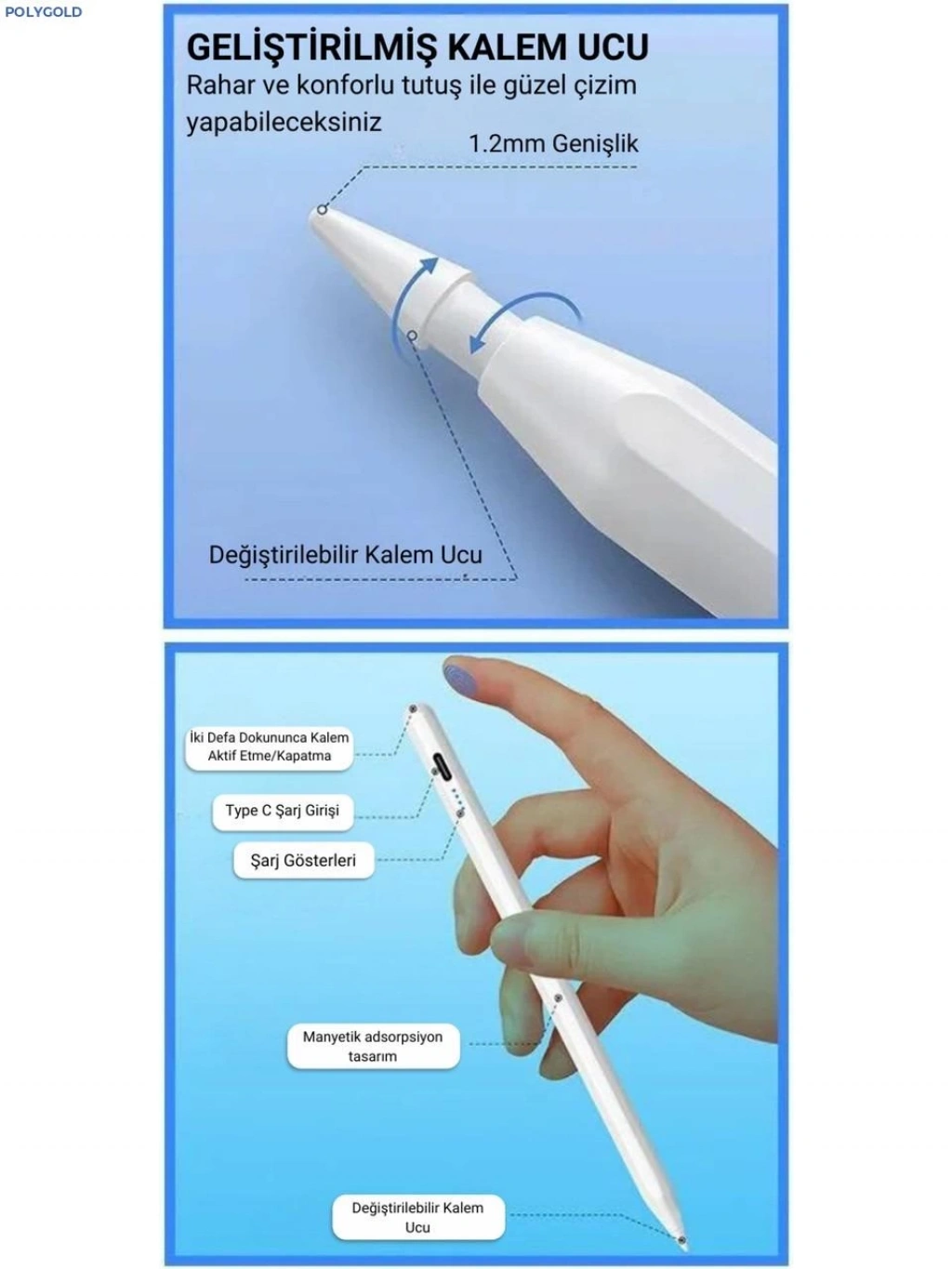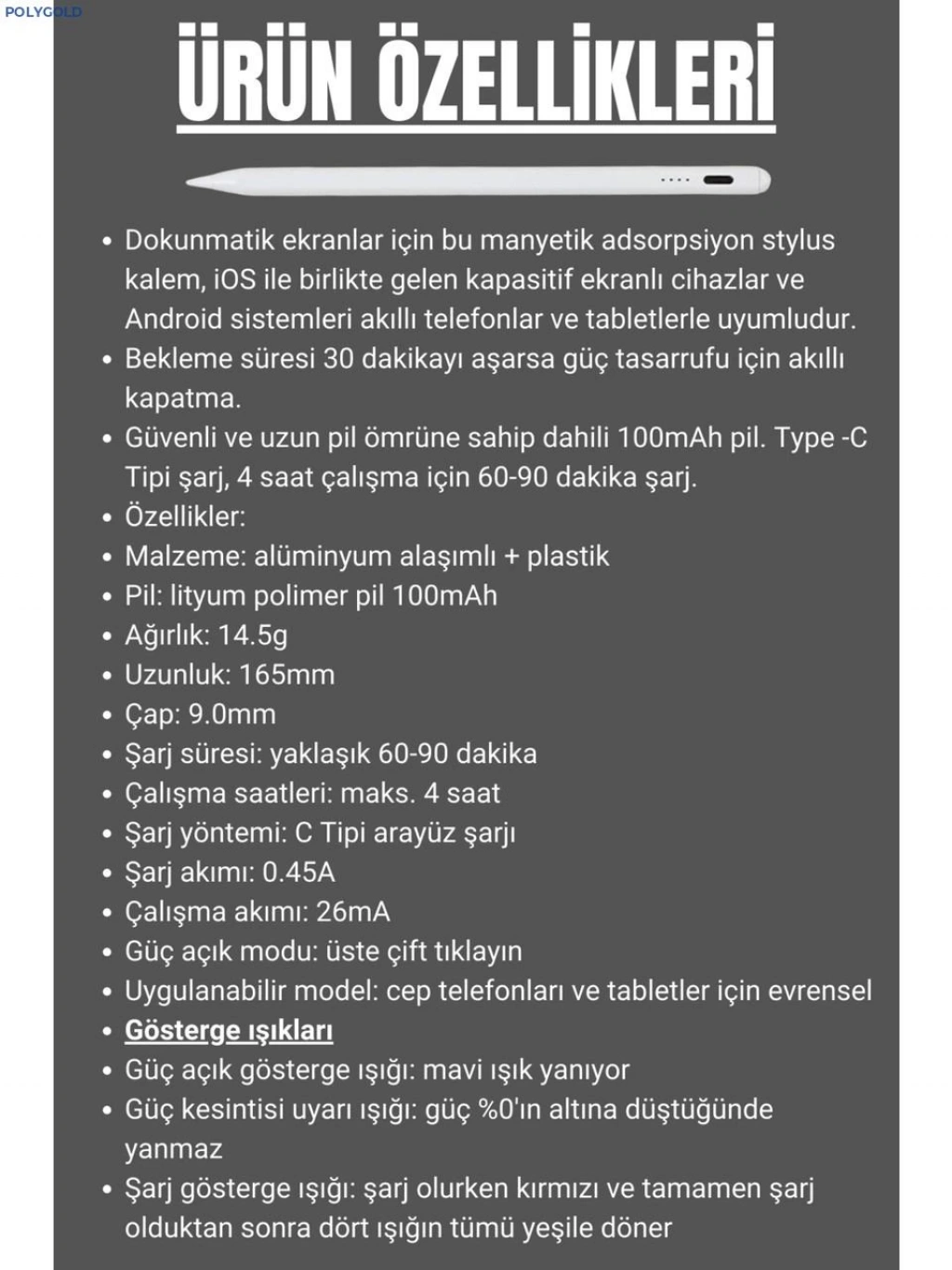 1. Dokunmatik ekranlar için bu manyetik adsorpsiyon stylus kalem, iOS ile birlikte gelen kapasitif ekranlı cihazlar ve Android sistemleri akıllı telefonlar ve tabletlerle uyumludur.