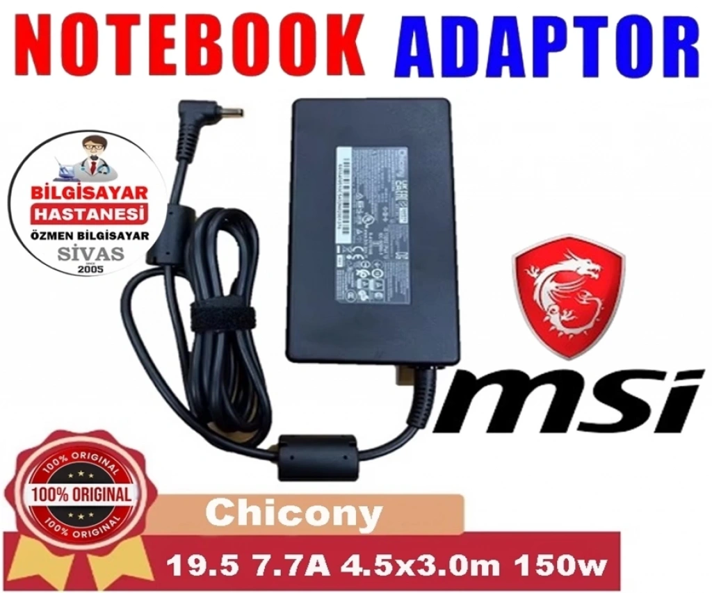 Msı Orjınal 19.5v 7.7A 150w 4.5mm x 3.0mm iğne uç Katana GF66 GF76 GL66 GL76 WF66 WF76 Gf63 gf65 GF75 Alpha 17, Pulse Stealth 15M Crosshair 15 17, Sword 15 17, Creatorpro M16 Creator M16 Ms-1581, Ms-1584 Ms-1583 Ms17l1, Ms-16r5