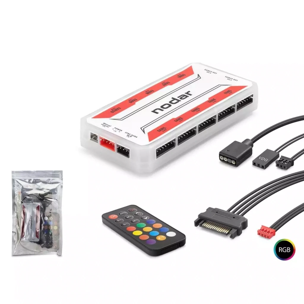 Nodar Nd2806, bilgisayar kasasındaki ARGB fan ve LED aydınlatmaları tek merkezden kontrol etmeyi sağlayan gelişmiş bir kontrolcü setidir.